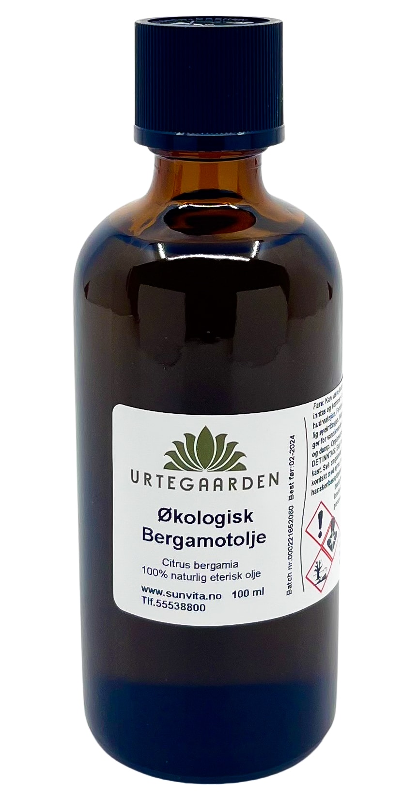 Bergamot eterisk olje fra bergamott frukt.Fremstillt ved kaldpressing av skall fra økologisk Citrus bergamia.