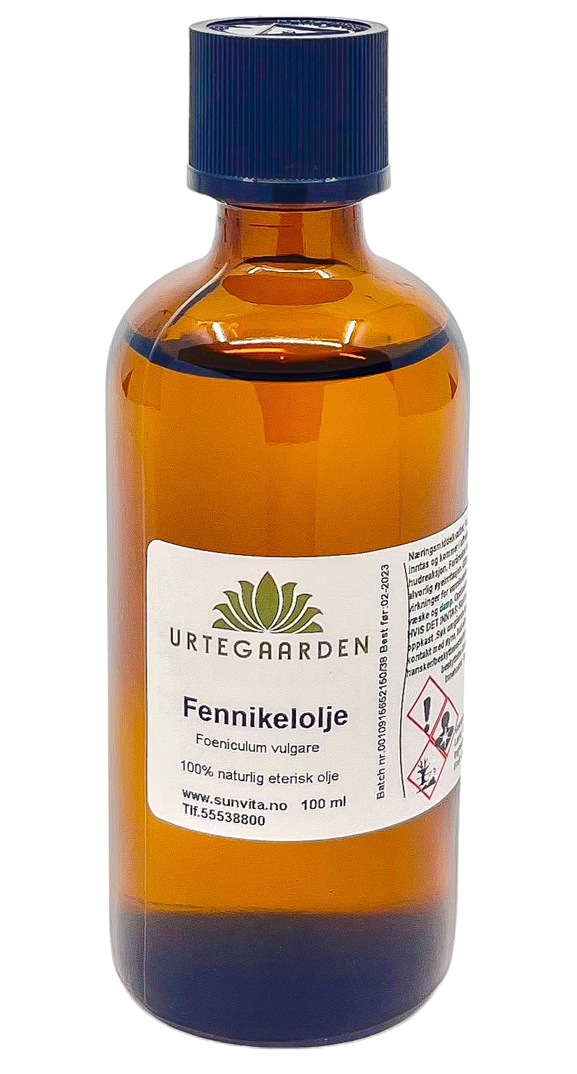 Anvendes til kosmetikk.Virker sammentrekkende og varmende. Velegnet til fet og moden hud. Dosering: Max 1%. Må aldri anvendes ufortynnet. Duft: Mellomnote. Fremstillt ved vanndampdestillering av knuste frø fra Foeniculum vulgare. Kun til utvendig bruk. Inneholder følgende av de 26 stoffer: Limonen. INCI: Foeniculum Vulgare Oil