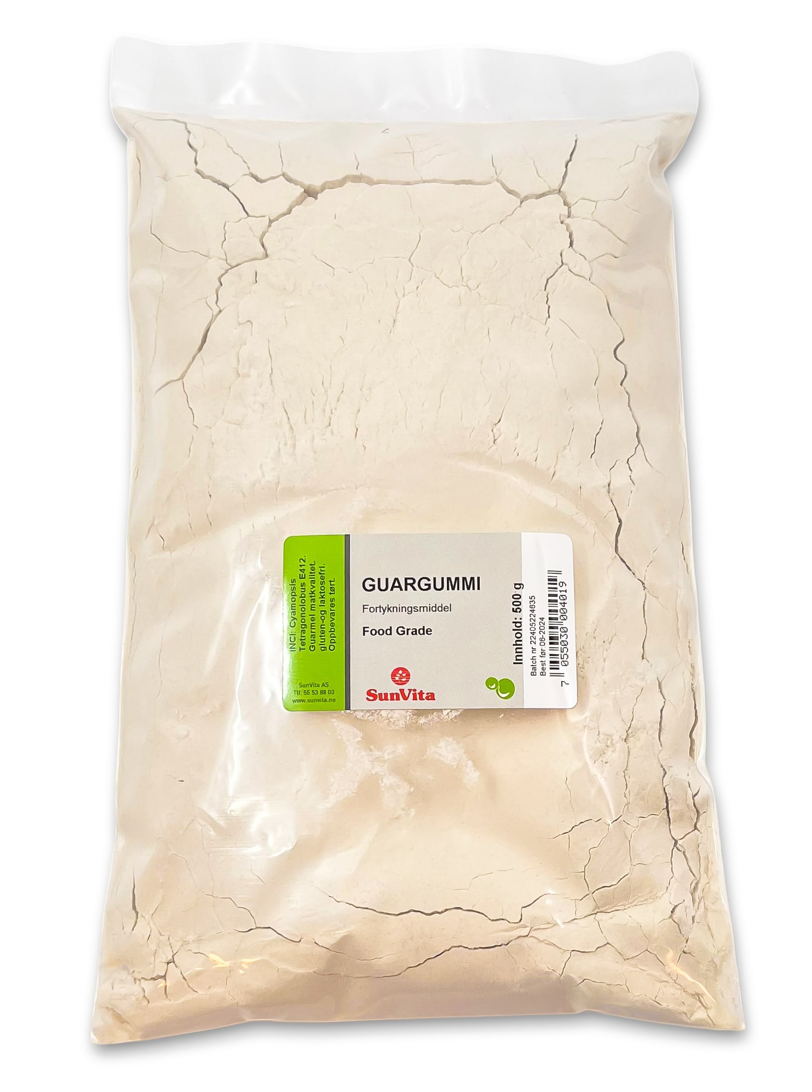 Guargummi er et fortykningsmiddel til bruk i næringsmidler og hudpleie. Brukes til bindemiddel i SÅPEBOBLER.