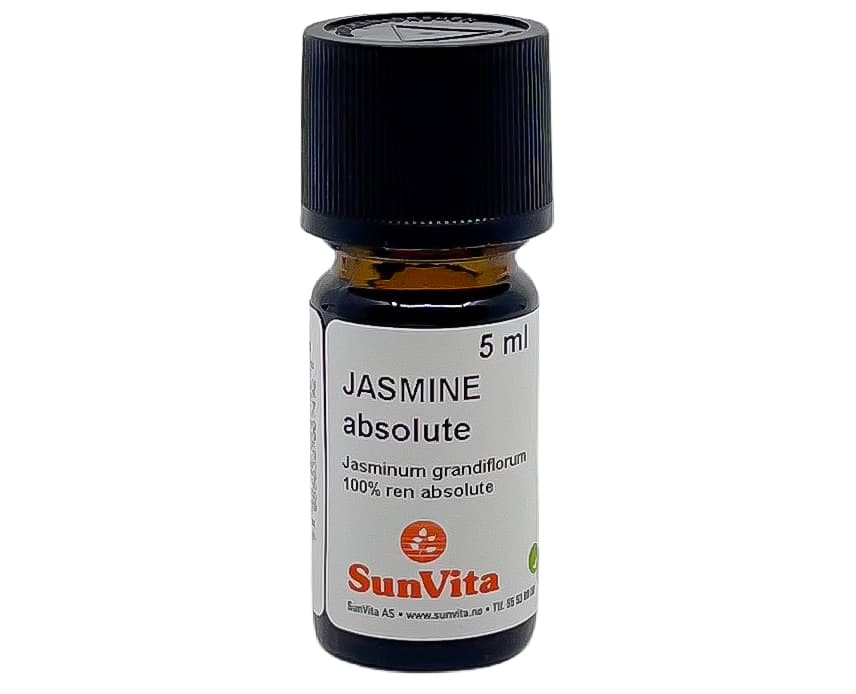 Anvendelse: Kosmetikk. Virker inflammationshemmende, helende og beroligende. Velegnet til tørr, irriteret hud. Dosering: 3-7 dr. pr. 100 ml/g base. Må aldri anvendes ufortynnet. Duft: Bunn note. Dosering: Følg anvisninger i oppskriften. Må aldri inntas ufortynnet. Fremstillt ved ekstraktion av blomsterne fra Jasminum grandiflorum L.