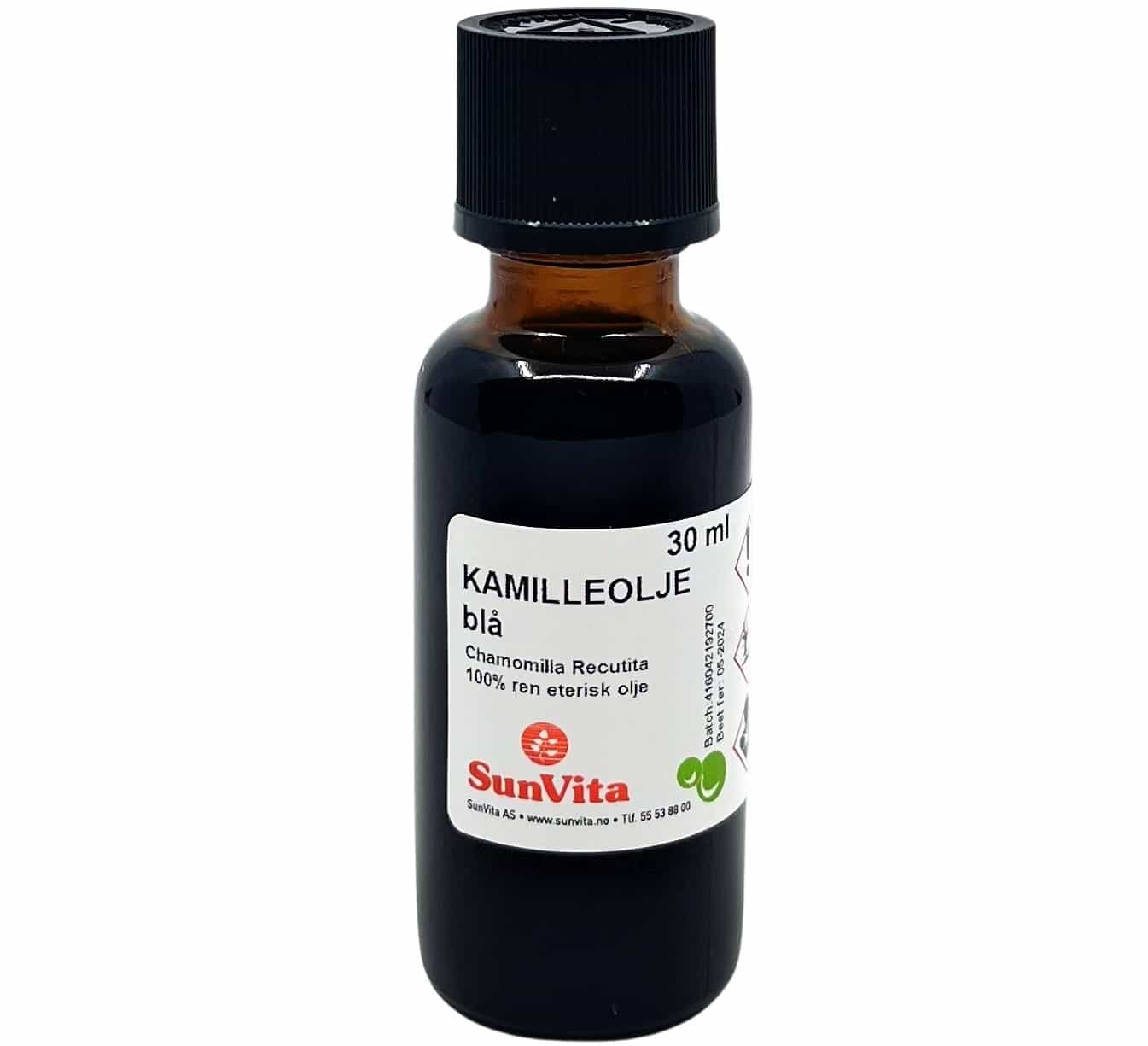 Anvendelse: Kosmetikk. Virker inflammationshemmende, cellefornyende og lindrende. Velegnet til alle hudtyper. Dosering: Max 1%. Må aldri anvendes ufortynnet. Duft: Mellomnote. Fremstillt ved vanndampdestillering av blomst fra Chamomilla Recutita. Kun til utvortes bruk. Inneholder følgende av de 26 stoffer: Ingen. INCI: Chamomilla Recutita Oil