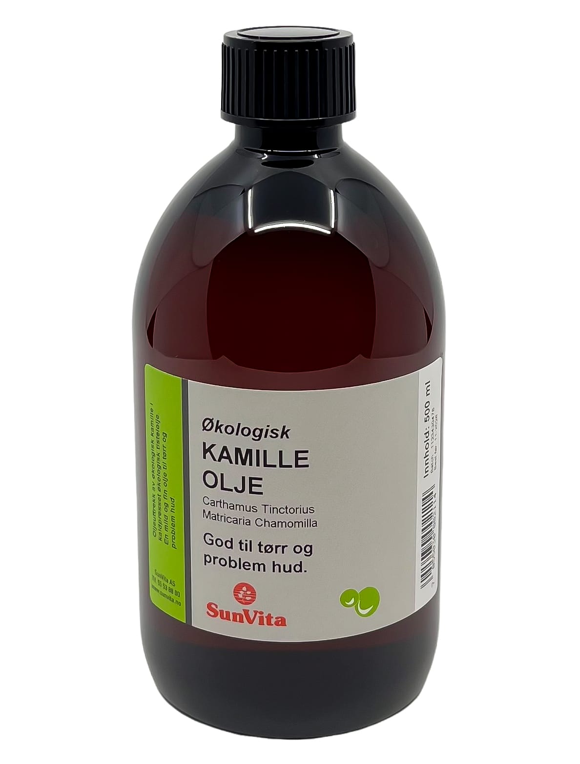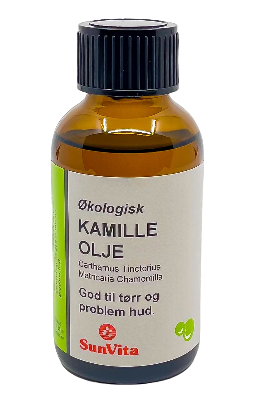Økologisk kamilleolje er fra økologisk urt uttrekt i økologisk kaldpresset tistelolje. Virker beroligende, regenererende, betennelsehemmende. Anvendes i krem, salve, kroppsolje.