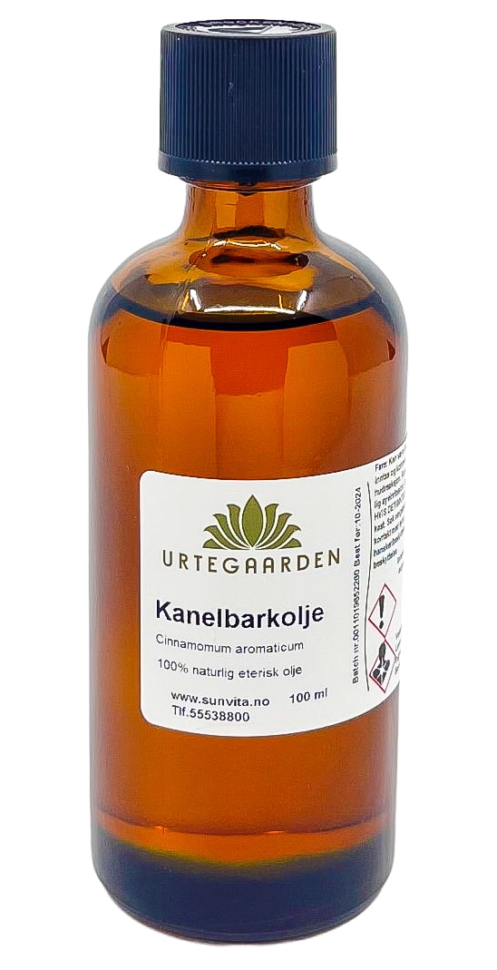 Kanelbark eterisk olje. Fremstillt ved vanndampdestillering av bark fra Cinnamomum aromaticum.