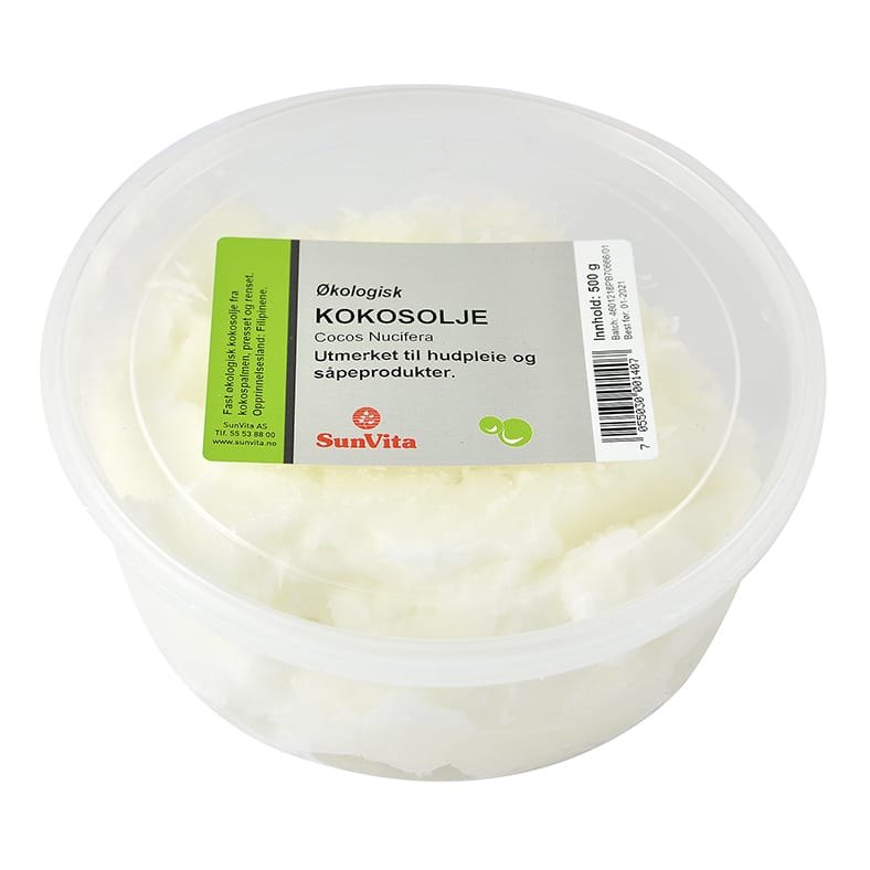 Har et høyt innhold av mettede fettsyrer, primært laurinsyre og myristinsyre.Virker beskyttende og absorberes langsomt av huden. Anvendes i creme, lotion og salve som en del av fettfasen samt til såpefremstilling. Smeltepunkt: 25-28°C INCI: Cocos Nucifera Oil