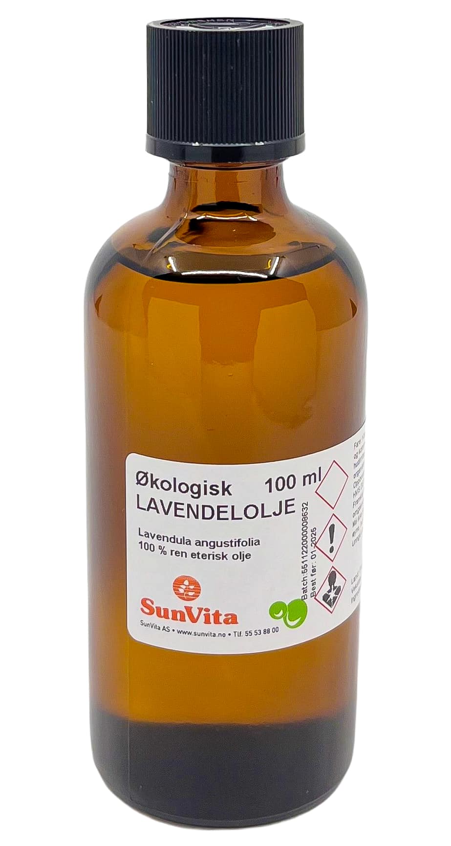 Anvendelse: Kosmetikk.Virker antiseptisk, talgregulerende, beroligende og cellefornyende. Velegnet til alle hudtyper. Dosering: Max 1%. Må aldri anvendes ufortynnet. Duft Mellomnote. Fremstillt ved vanndampdestillering av blomster fra økologisk Lavandula angustifolia. Kun til utvortes bruk. Inneholder følgende av de 26 stoffer: Linalool, citral, geraniol og limonen. INCI: Lavandula Angustifolia Oil
