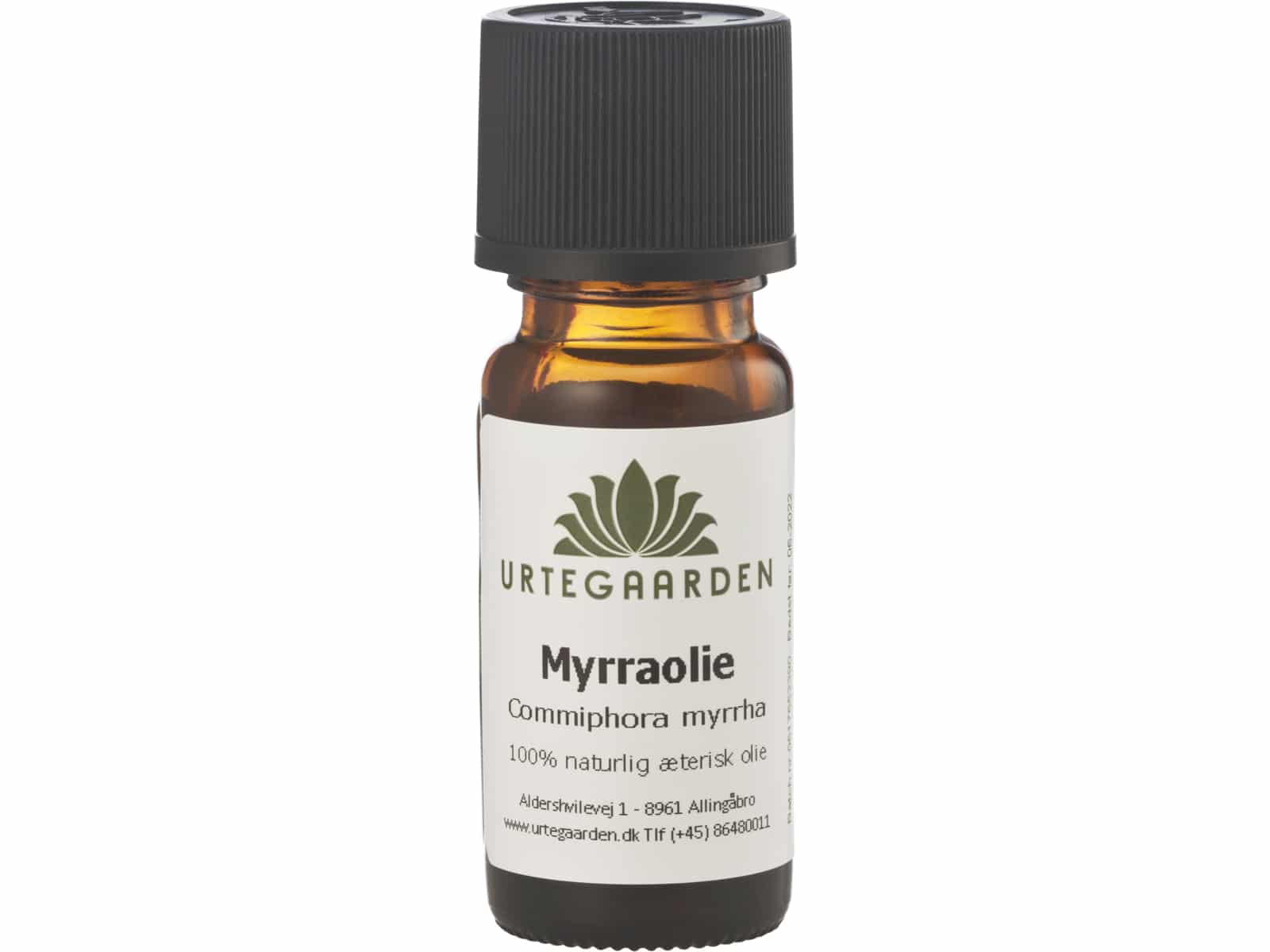 Anvendelse: Kosmetikk. Virker inflammationshæmmende, cellefornyende og styrkende. Velegnet til fet og moden hud. Dosering: Max 1%. Må aldri anvendes ufortynnet. Duft: Bundnote. Fremstillt ved vanndampdestillering av harpiks fra Commiphora myrrha. Kun til utvortes bruk. Inneholder følgende av de 26 stoffer: Limonen og linalool. INCI: Commiphora Myrrha Oil