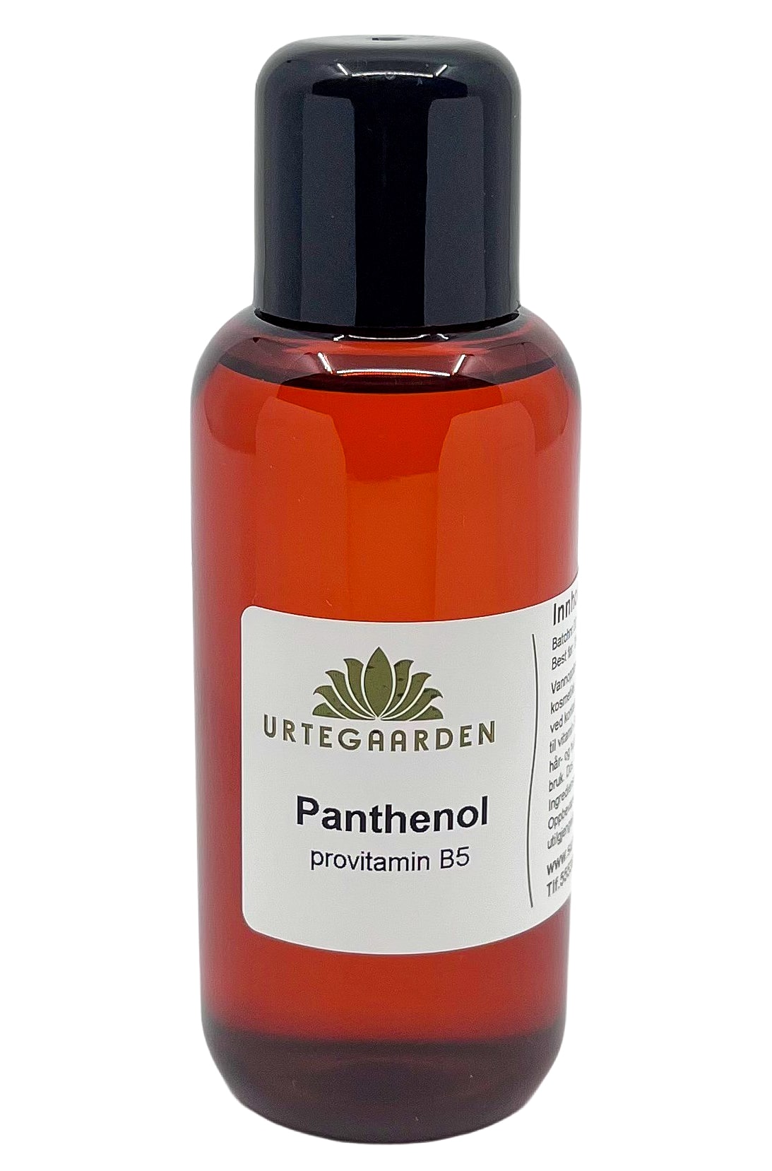 Panthenol omdannes ved kontakt med huden til vitamin B5, som er nødvendig for at huden skal fungere optimalt. Kun til utvortes bruk. Panthenol anvendes i krem, lotion, salve, shampo, skintonic m.m. Virker regenererende, reparerende, fugtighetsbevarende og beskyttende og er velegnet til alle hud- og hårtyper. Dosering: 4-10% i sluttfasen. INCI: Panthenol, Water