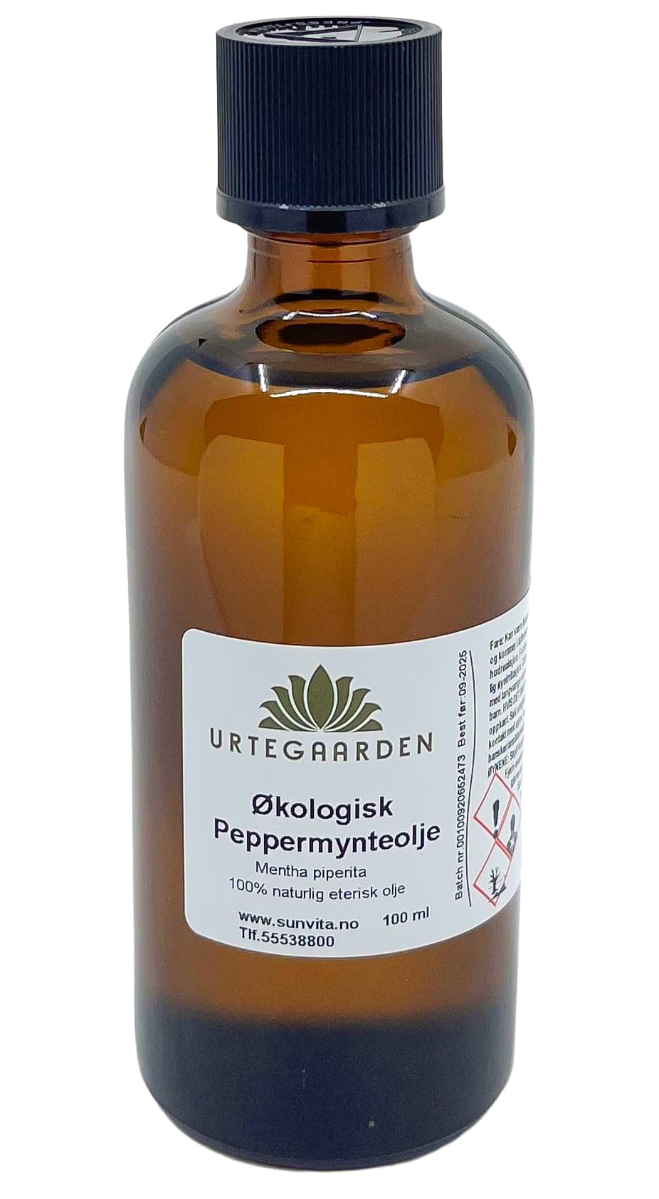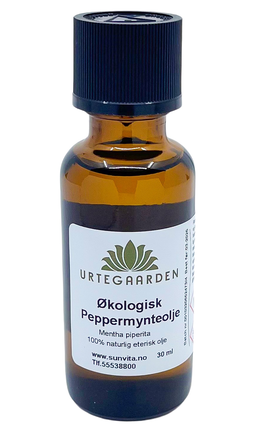 Anvendelse: Følg anvisninger i oppskriften. Kosmetik Virker kløestillende, kjølende og rensende.Velegnet til alle hudtyper. Dosering: Max 1%. Må aldri brukes ufortyndet. Duft Topnote. Fremstillet ved vanddampdestillering av blad fra økologisk Mentha piperitae. Indeholder følgende af de 26 stoffer: Limonen og linalool. INCI: Mentha Piperita Oil