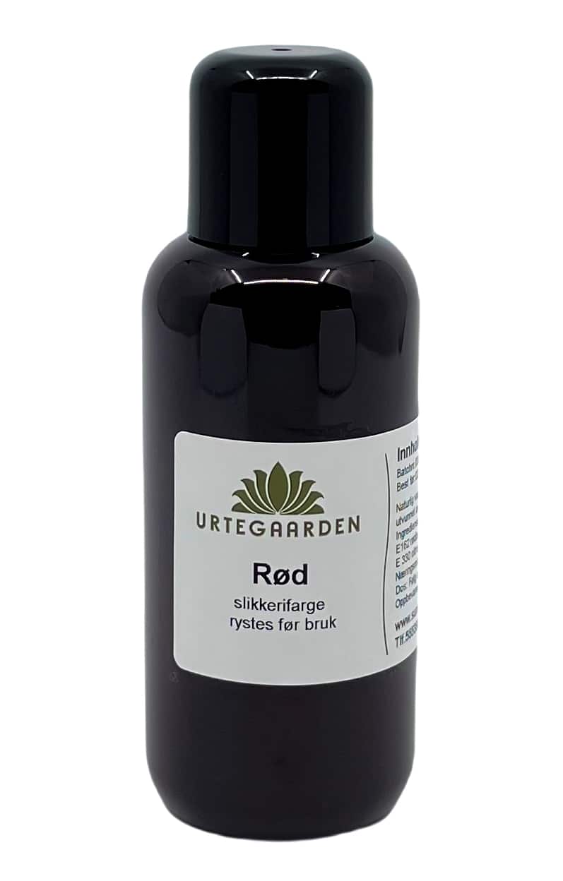Anvendes til fargning av drops, vingummi, skumfidus, fruktflesk, fløtebolleskum, frosting, skumfidusfondant (MMF), sukkerpasta (sugarpaste), pannekaker o.l. Veiledende dosering: 1-2 ml pr. 500 g. Følg anvisning i oppskrift. TIPS: Kan også brukes til å farge kokosmel, hakkede mandler, nøtter o.l. til pynt på fløteboller, fylte sjokolader, kaker o.l. Veiledende dosering: 10 dråber pr. dl. Næringsinnhold pr. 100 g Energi: 1010 KJ/238,1 kcal Protein: 1,4 g Kulhydrat: 56 g Herav sukker: 55,4 g Fett: 0,3 g Herav mettet fett: 0,1 g Natrium: – Salt: 48 mg Ingredienser: E162 rødbedefarve (Betaniner), og E330 citronsyre (antioxidant)